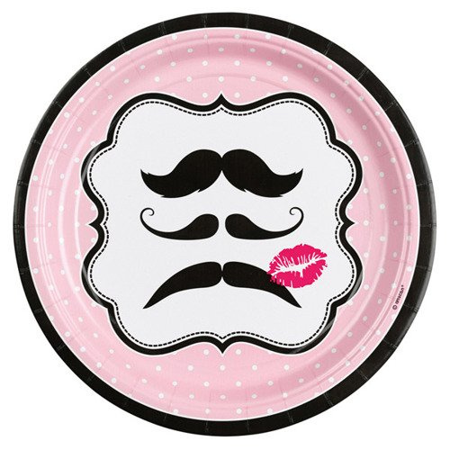 Talerzyki papierowe Wąsy okrągłe 23cm 8 szt