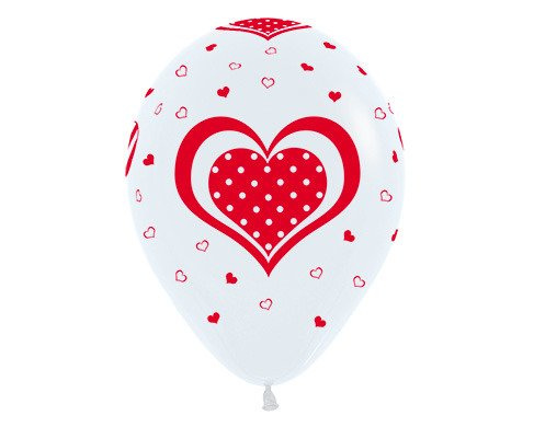 Balony Sempertex Serca w kropki 12'' 50 szt Mix biało-czerwony