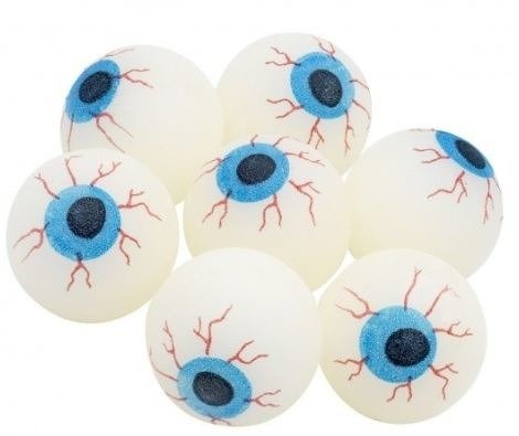 Świecąca w ciemności piłeczka kauczukowa w kształcie gałki ocznej.