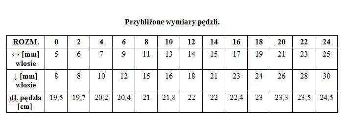 Pędzle sztuczne z włosia Czerwony Toray. Pędzel koci język, półokrągło wykończony, więc łączy w sobie cechy pędzla okrągłego i płaskiego.