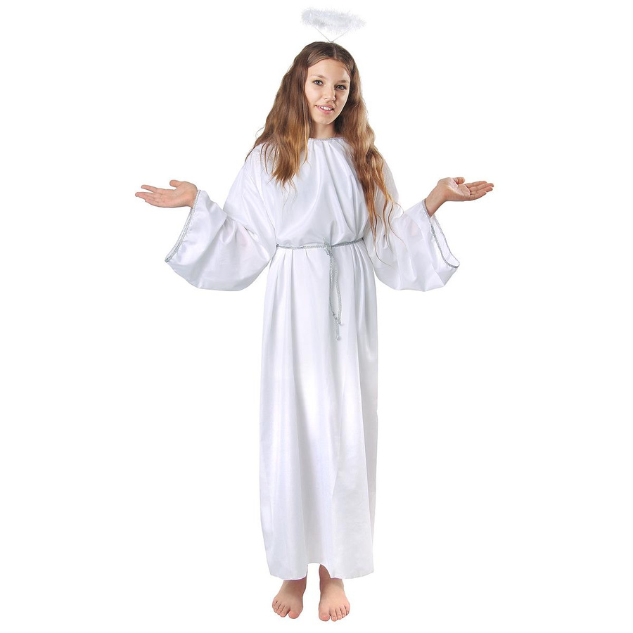 • Anioł strój dla dorosłych rozm. uniwersalny. Zestaw zawiera: sukienkę, pasek, aureole.
