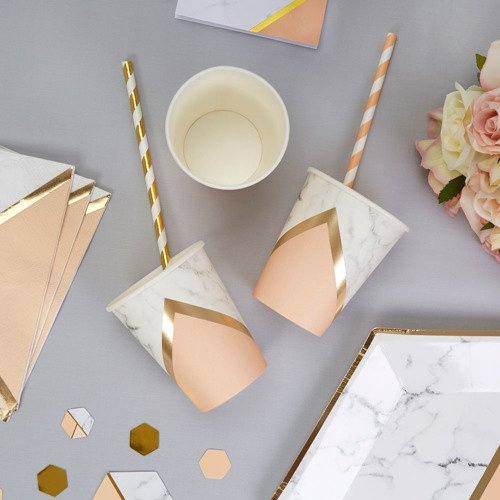 Kubeczki papierowe marmur złote paski Peach 8 szt