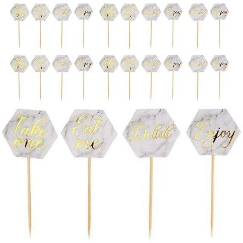 Pikery toppery marmur w złote napisy dekoracje na tort muffinki 20szt