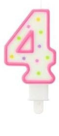 Świeczka urodzinowa w kolorowe kropeczki - cyfra 4.