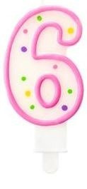 Świeczka urodzinowa w kolorowe kropeczki - cyfra 6.