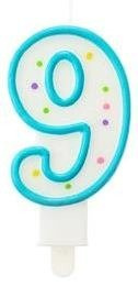 Świeczka urodzinowa w kolorowe kropeczki - cyfra 9.