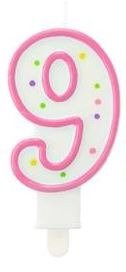 Świeczka urodzinowa w kolorowe kropeczki - cyfra 9.