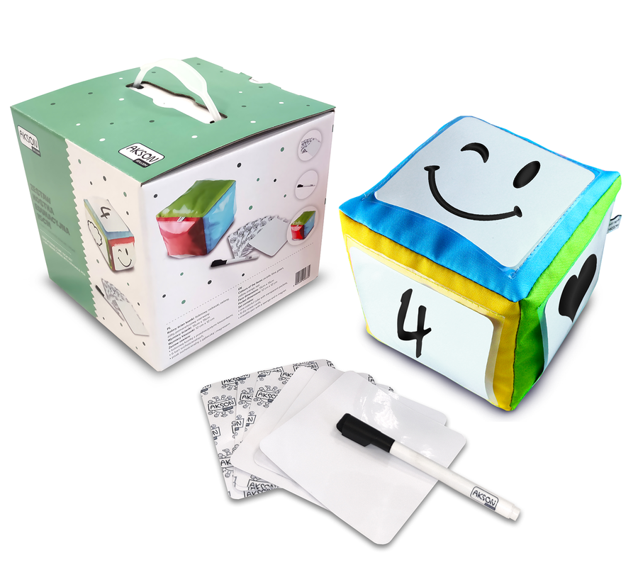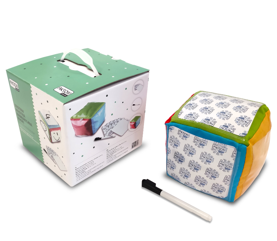 - Kostka edukacyjna firmy Akson to doskonałe narzędzie do gier zespołowych, pracy w grupach oraz zajęć integracyjnych. Rozmiar : 15 cm x 15cm
