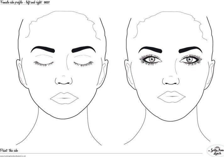 - Mata treningowa do malowania twarzy Sally Ann Lynch- A3 Kobieta oczy otwarte i zamknięte.