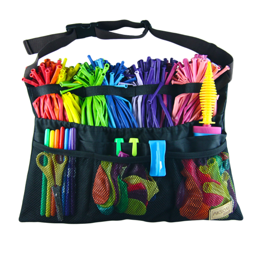 pasa na balony - specjalne rzepy ułatwią przechowywanie długich balonów, dzięki nim można posegregować balony do modelowania i mieć do nich wygodny dostęp, kieszonki wykończone gumką dają możliwość przechowywania dodatkowych akcesoriów i okrągłych balonów, głębsze kieszenie idealnie sprawdzą się np. na pompkę do balonów, dodatkowo pas wypełniony balonami bardzo dobrze się prezentuje i przyciąga uwagę
