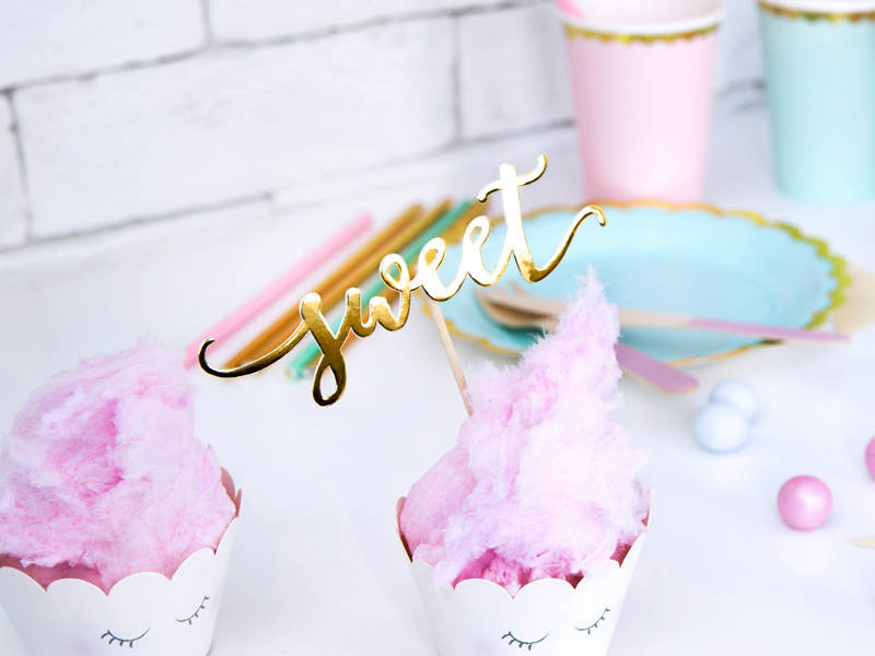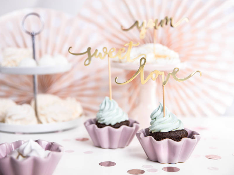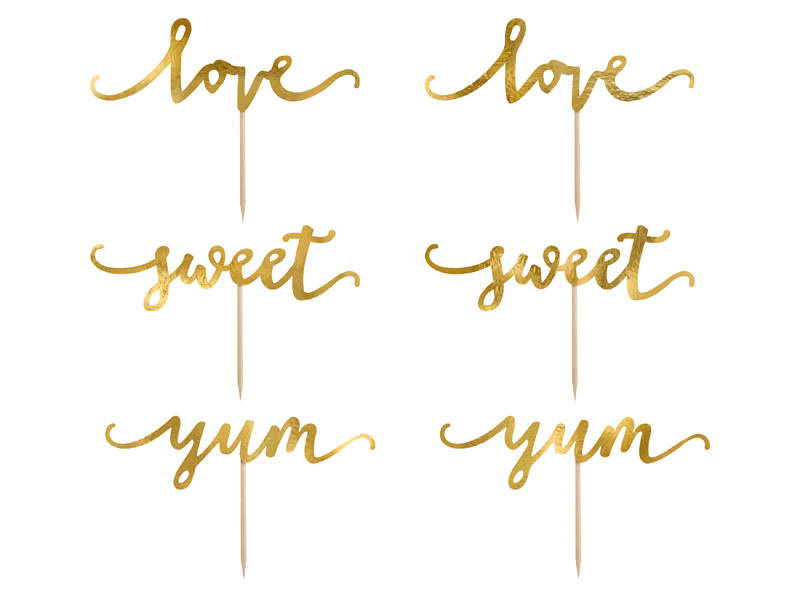 Pikery toppery napisy love sweet yum złote dekoracje muffinek tortu 6 szt