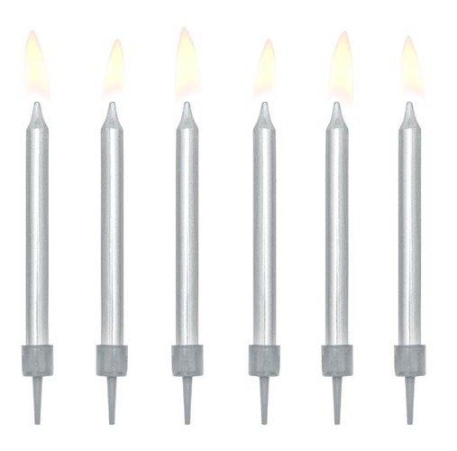 Świeczki urodzinowe klasyczne srebrne 6 szt