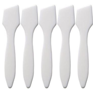 - Zestaw 5 plastikowych szpatułek do nakładania wosku kosmetycznego.