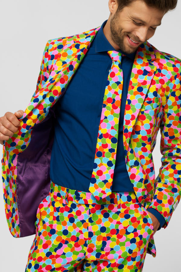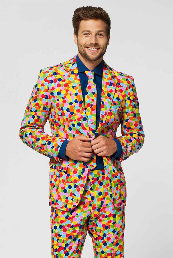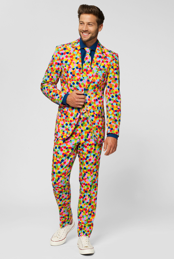 • Ze względu na swoje unikatowe wzory, polecane dla wszystkich animatorów! Garnitur wykonany z porządnego, nieprześwitującego materiału. W skład zestawu wchodzi: marynarka, spodnie, krawat.