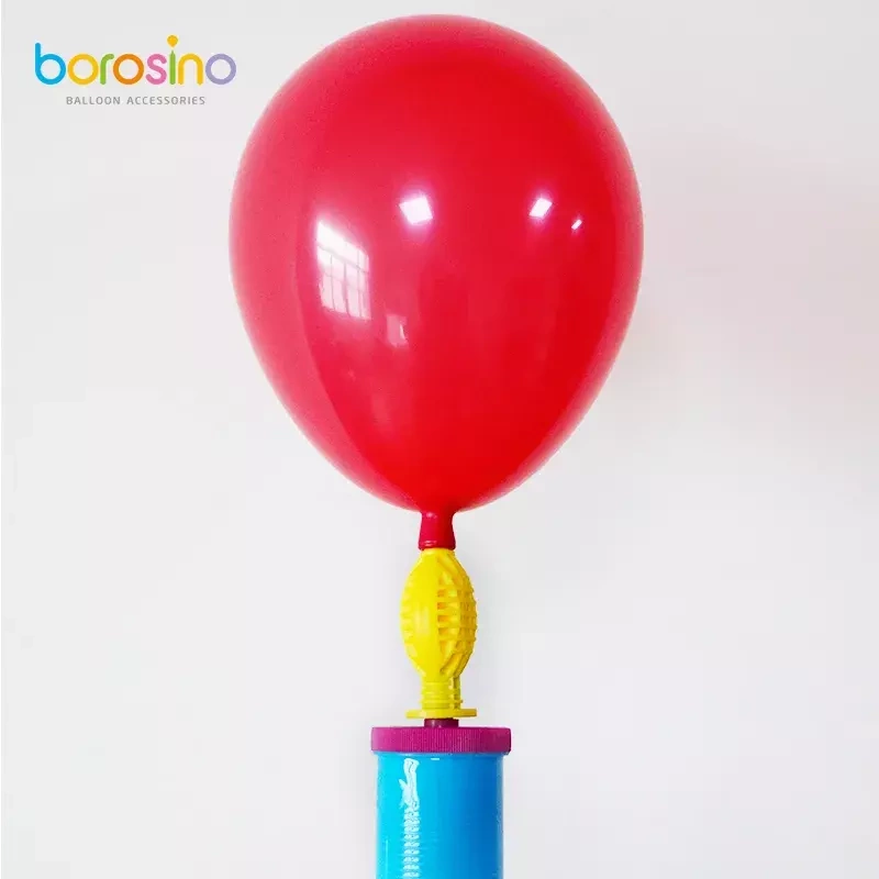 Profesjonalna pompka ręczna do nadmuchiwania balonów. Pompka jest dwustronna. Dzięki podwójnemu działaniu – powietrze wtłaczane jest zarówno przy pociąganiu, jak i przy naciskaniu tłoka – napompowanie balonów zajmuje znacznie mniej czasu i wysiłku.