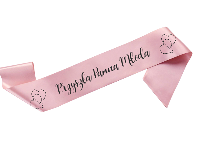 Szarfa wykonana z gładkiej satyny, z nadrukowanym napisem "Przyszła Panna Młoda"