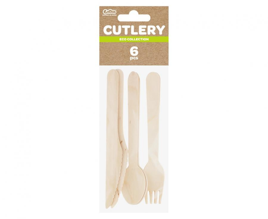 Sztućce drewniane 6 szt. eko gładkie naturalne