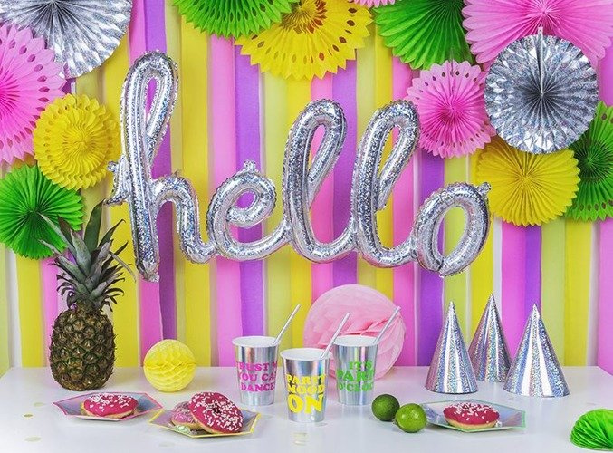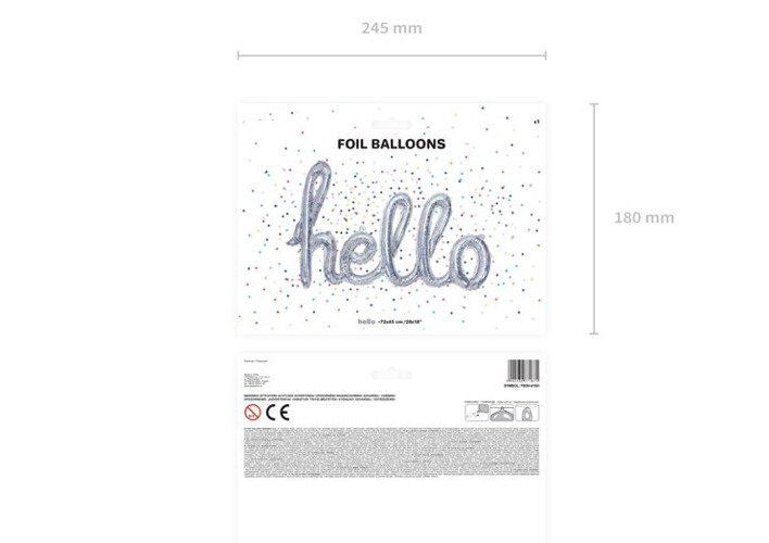Balon foliowy napis "hello", holograficzny 72x45 cm