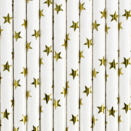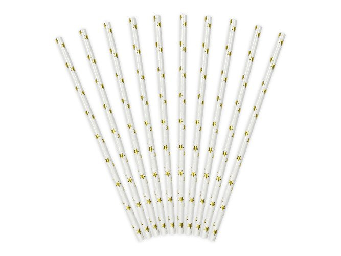 Super słomki w kolorze białym zdobione złotymi gwiazdkami.
