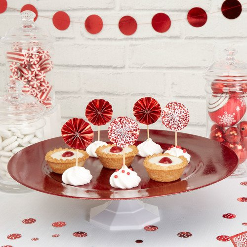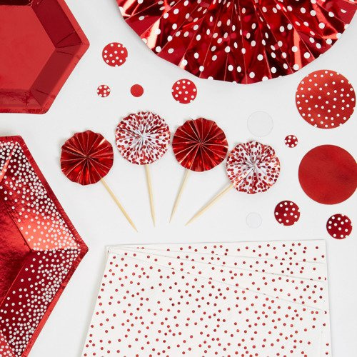 Pikery toppery okrągłe czerwone i białe w czerwone kropeczki dekoracje na tort 8szt