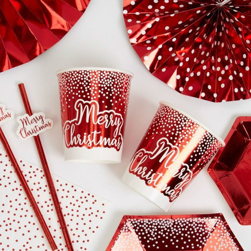 - Serwetki papierowe w świątecznym stylu. Białe w czerwone, metaliczne kropki. Elegancki dodatek na różnego typu przyjęcia. Zestaw zawiera 16 sztuk.