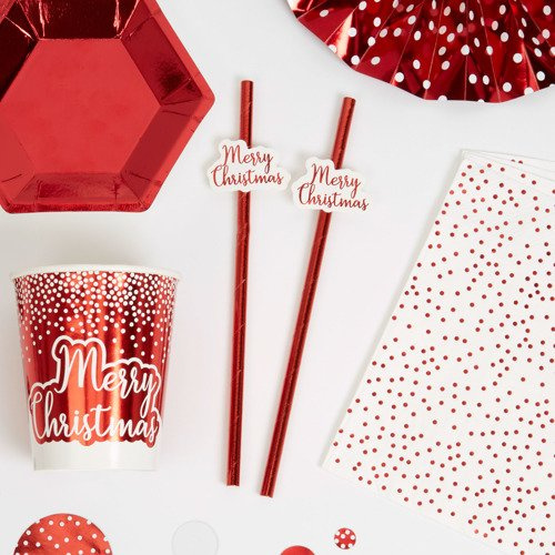 - Czerwone metaliczne słomki do picia z napisem ,,Merry Christmas''. Oczaruj swoich gości na świątecznym przyjęciu. Zestaw zawiera 10 szt.