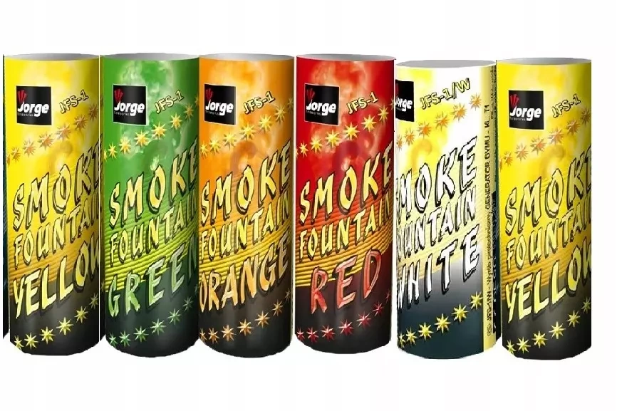 Wielobarwne fontanny, które po odpaleniu dają bardzo intensywny, gęsty i kolorowy dym.