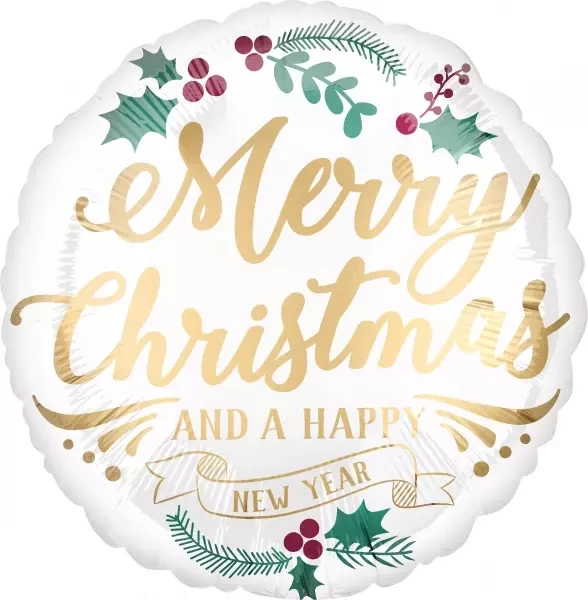 Piękny, okrągły balon foliowy z motywem Świąt Bożego Narodzenia oraz Nowego Roku - obowiązkowo przy dekoracjach świątecznych i noworocznych.