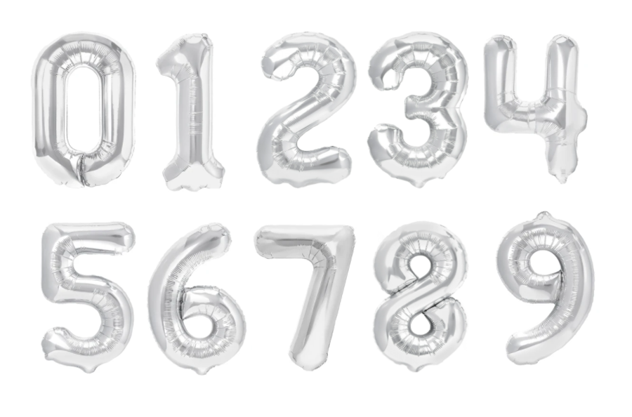 BALON foliowy CYFRA mała 40 cm SREBRNA