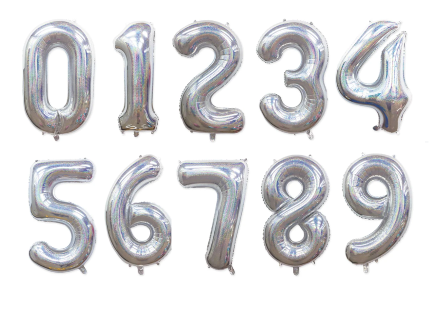 • Balon foliowy CYFRA w kolorze holograficznym, wysokość ok. 100 cm (40")
