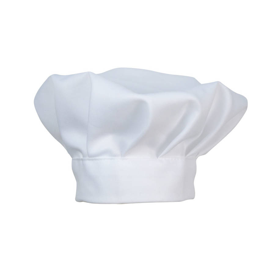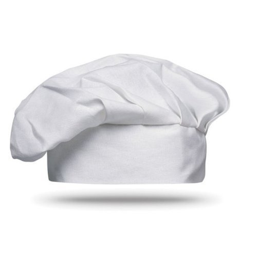 Biała czapka dla kucharza, Szefa Kuchni. Wykonana z białego materiału. Dzięki zakładkom ładnie się układa. Może posłużyć jako dodatek do kostiumu na Bal Karnawałowy.