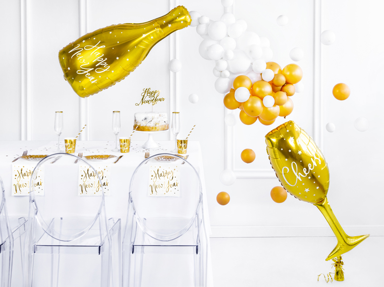 - Kieliszek szampana balon foliowy złoty. Wymiary ok. 28 x 80 cm (11 x 31,5"). Cena za sztukę