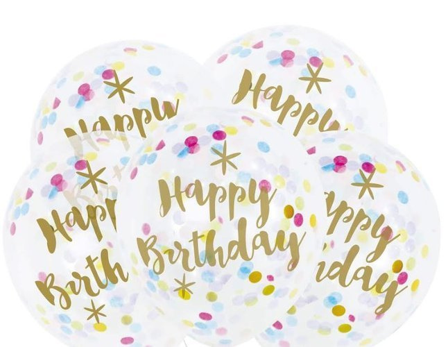 Balony gumowe Happy Birthday z kolorowym konfetti 12'' 3 szt.