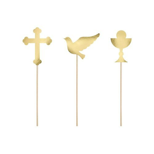 Pikery toppery I Komunia Święta złote dekoracje na tort 1,5cm 6szt