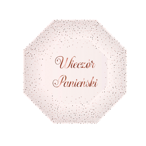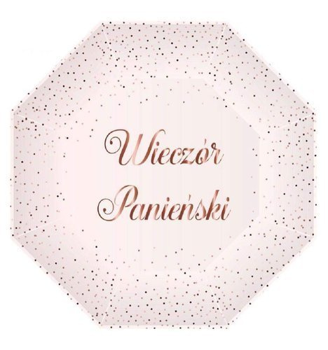 - Talerzyki w przepięknym kolorze pastelowego różu z metalicznym napisem Wieczór Panieński.