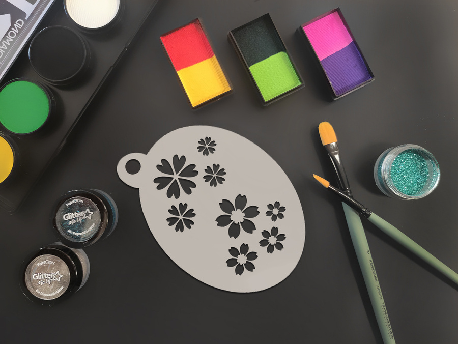 • Wielorazowy szablon przeznaczony do stosowania z farbami do twarzy i ciała czy brokatem. Dzięki niemu w prosty sposób można uzyskać przepiękne malunki. Cena za sztukę.