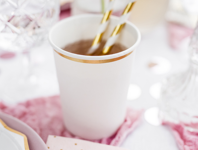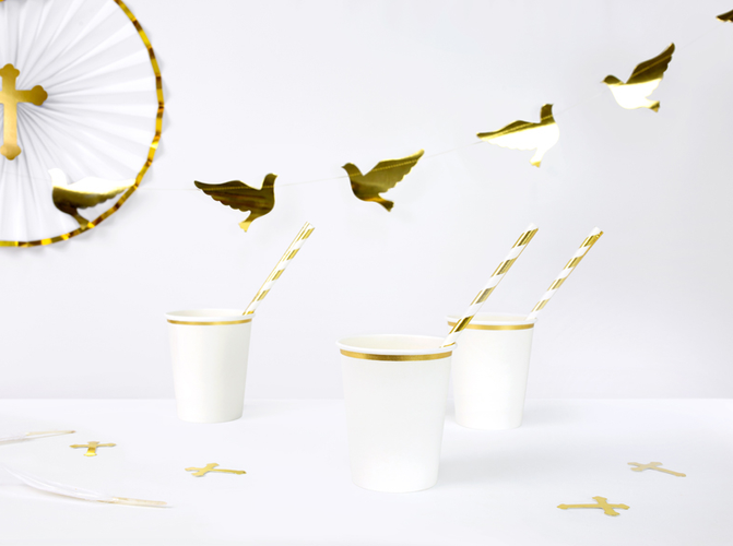 • Jednorazowe, papierowe kubeczki pojemności 260 ml. Idealnie sprawdzają się podczas chrzcin, komunii czy wesel.