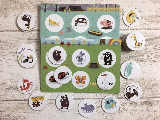 Trwałe, wykonane z grubej tektury elementy są idealne już dla dwulatków, a zabawa w przyporządkowywanie obrazków zwierząt do dużych ilustracji na planszach dostarczy dzieciom wiele radości, ćwicząc przy tym motorykę małą i umiejętność rozpoznawania kształtów.