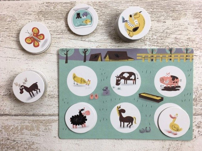 Niezwykle proste zasady gry, która polega na wyszukiwaniu szczegółów i dopasowaniu obrazka na żetonie do odpowiedniego miejsca na planszy. „Loteryjka Zwierzęta 2+” rozwija spostrzegawczość, koncentrację, precyzję i koordynację wzrokowo-ruchową, a także umiejętność rozpoznawania zwierząt w ich naturalnym otoczeniu.