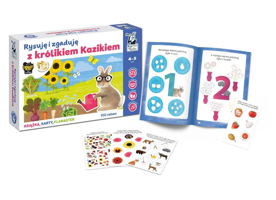 RYSUJĘ I ZGADUJĘ Z KRÓLIKIEM KAZIKIEM KSIĄŻKA KARTY KAPITAN NAUKA