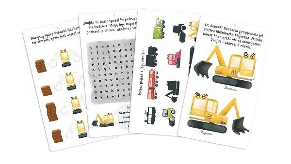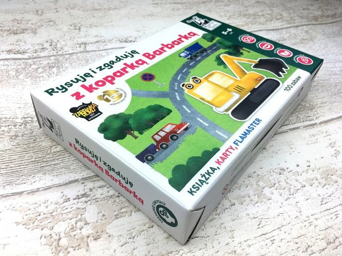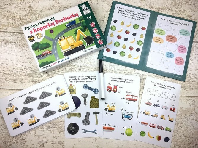 „Rysuję i zgaduję z koparką Barbarką” to wyjątkowy zestaw rozwijających zadań dla pięcio- i sześciolatków, który zapewni wiele godzin wspólnej, twórczej rozrywki. Pakiet otrzymał 1 miejsce w prestiżowym konkursie „Świat Przyjazny Dziecku” organizowanym przez Komitet Ochrony Praw Dziecka oraz wyróżnienie w konkursie „Zabawka Roku”.