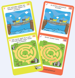 Książeczka edukacyjna została opracowana specjalnie dla dzieci w wieku 3-5 lat przez przez psychologów dziecięcych specjalizujących się we wspomaganiu rozwoju małych dzieci. Po jednej stronie każdej karty książeczki znajdują się zagadki z kolorowymi ilustracjami, po drugiej – odpowiedzi. Dzięki temu dziecko może samodzielnie sprawdzić rozwiązanie.