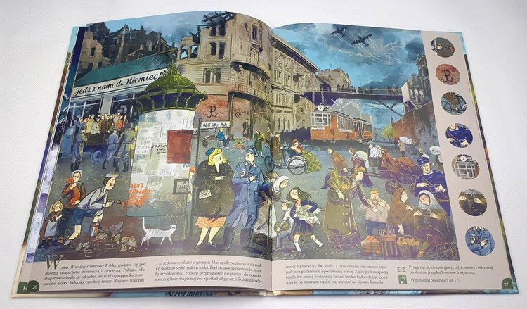 „Polska. Na tropie historii” to 12 bogato ilustrowanych opowieści o dziejach Polski, m.in. słowiańskiej osadzie, turniejach rycerskich, bitwach z husarią na czele, XIX-wiecznych fabrykach, okupowanych w czasie II wojny światowej miastach i długaśnych kolejkach po mięso w czasach PRL. Barwnym, panoramicznym ilustracjom towarzyszą ciekawe opowieści czytane przez lektora. Z myślą o najmłodszych odbiorcach powstała gra obserwacyjna, która pozwala ćwiczyć spostrzegawczość i koncentrację oraz intuicyjnie przyswajać wiedzę.