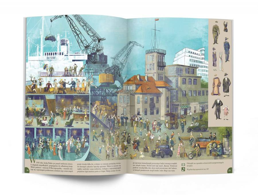 Jak żyli mieszkańcy średniowiecznego miasta? W co ubierała się szlachta? Jakie udogodnienia można było zobaczyć na XIX-wiecznej ulicy i co czekało na pasażerów w czasie rejsu transatlantykiem „Batory”? Odbiorcy tej książki odkryją ciekawostki dotyczące pracy i rozrywki mieszkańców dawnej Polski, mody oraz najważniejszych wynalazków, a dzięki realistycznym i pełnym szczegółów ilustracjom namalowanych przez Zuzę Wollny, autorkę bestsellerowego cyklu „Był sobie król...”, przeniosą się w czasie do historycznej epoki i poznają jej niepowtarzalny styl.