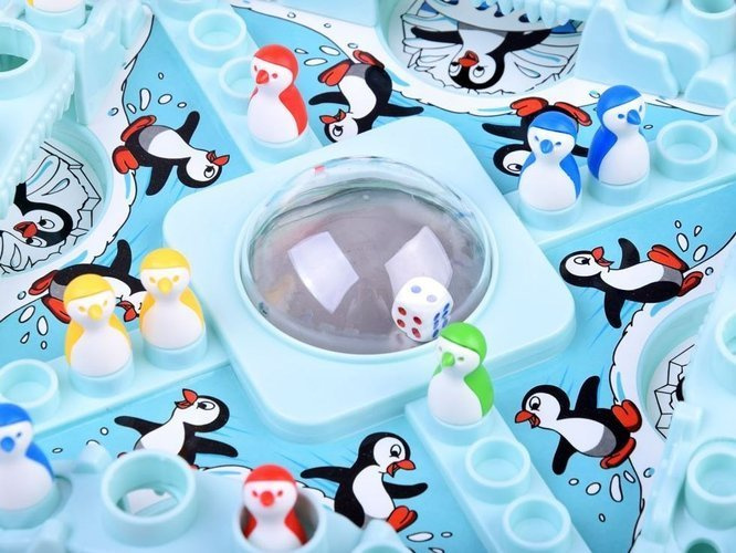 Rozkładamy zestaw z umiejscowieniem mostów zwodzonych w przeznaczonych dla nich miejscach. Pingwinki ułożone kolorystycznie czekają na swoją kolej. Start zaczyna ta osoba, która po naciśnięciu przeźroczystej półkuli umiejscowionej na środku planszy wyrzuci na kostce 6 oczek. Plusem jest to, iż kostka jest zamknięta w półkuli i nie ma obawy, że gdzieś się zawieruszy. Pingwiny poruszają się o ilość oczek wskazanych przez kostkę. W trakcie gry można poruszać się tylko jednym pingwinkiem.