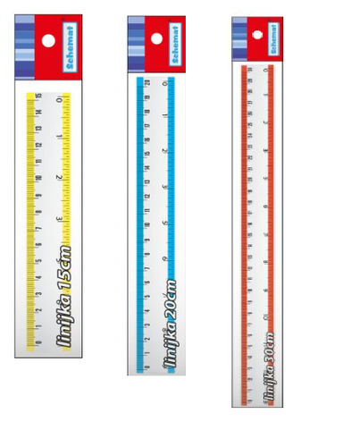 - Przeźroczysta linijka wykonana z polistyrenu. Posiada kolorowe podziałki.