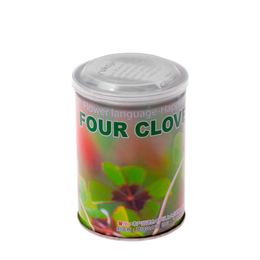 Wystarczy podlać puszkę w której znajdują się nasionka i roślinka po kilku tygodniach zacznie kiełkować i wzrastać. Obserwuj ją uważnie, czy miałeś szczęście i trafiłeś na czterolistną.