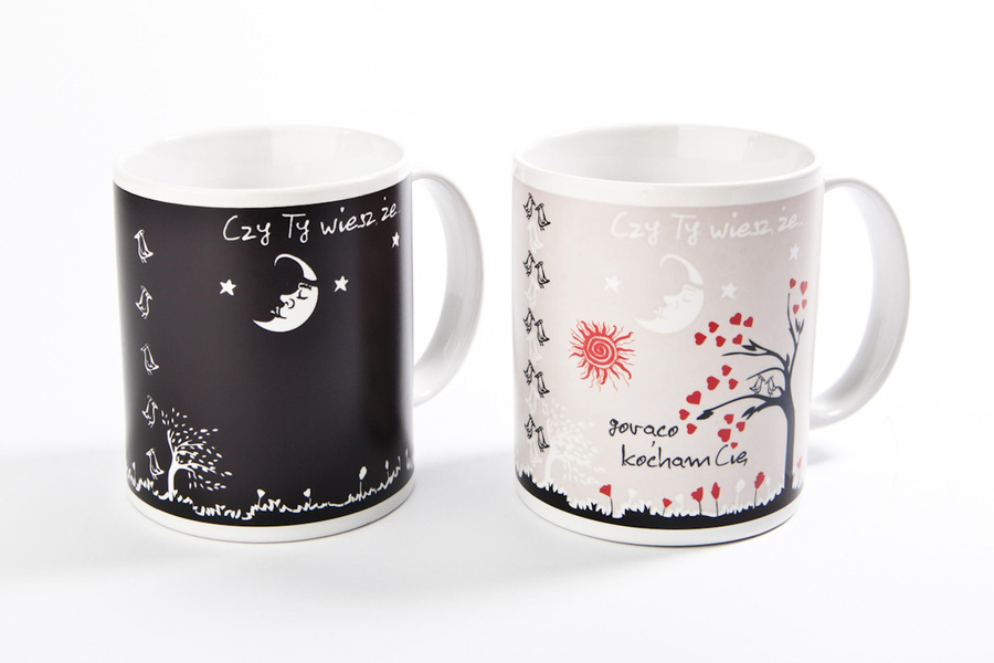 - Pomysłowy prezent dla wszystkich zakochanych! Uczuciowy kubek zmienia swój wygląd i nastrój obdarowanej osoby, gdy tylko zalejesz go wrzątkiem! Zakochany kubeczek podniesie temperaturę uczuć Waszego związku.