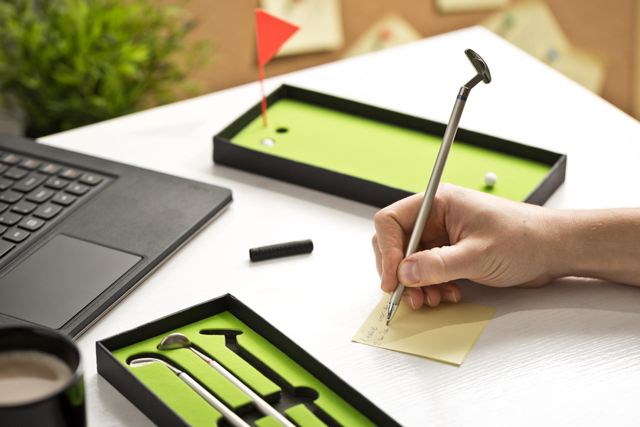 Taki gadżet potrafi poprawić samopoczucie każdemu facetowi. Ten zestaw designerskich długopisów nie tylko dla wielbicieli golfa to małe szaleństwo i odrobina przygody w biurowej monotonii.