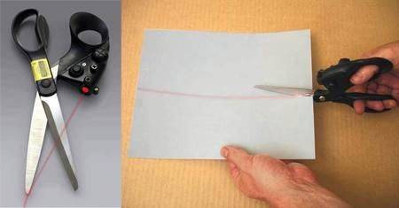Każdy, kto wziął kiedyś nożyczki do ręki i próbował wyciąć coś precyzyjnie wie, że jest to zdanie z serii mission immposible i oparte dodatkowo na licznych prawach Murphy'ego mówiących w skrócie o tym, że jak coś ma pójść krzywo na na 100% pójdzie. Znalazł się jednak ktoś, kto rzucił wyzwanie krzywemu losowi i stworzył gadżet, którego nie powstydziłby się nawet pewnie sam James Bond - nożyce laserowe. Po naciśnięciu guzika wiązka lasera pada na materiał, który chcemy przeciąć i pokazuje nam prostą linię cięcia. Teraz już prościutko i bez problemów jak po sznurku przetniemy wszystko, co nawinie nam się pod nożyce. Ale uwaga: Nożyczki są bardzo ostre.
